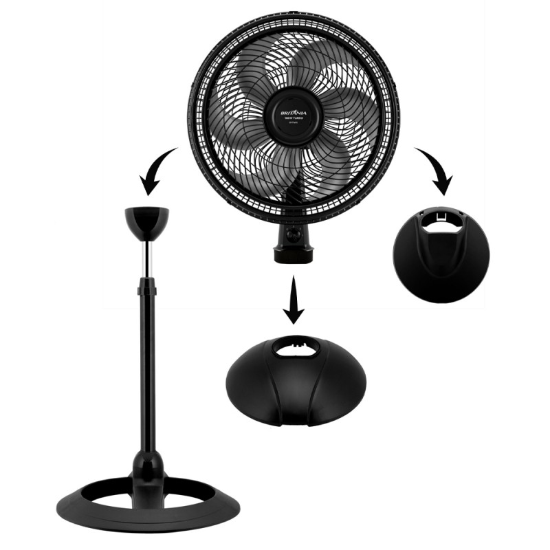3 em 1: Pode ser usado em mesas, no chão e até mesmo como ventilador de parede